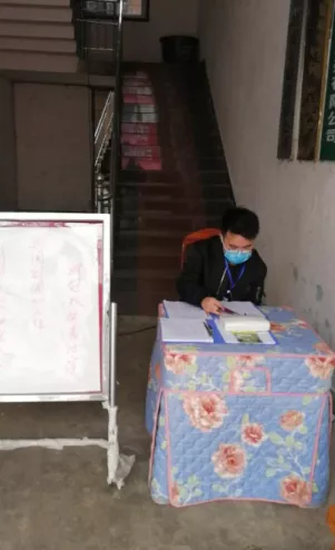 2019级软件工程四班学生,于疫情期间主动在社区帮助群众登记电子通行证。