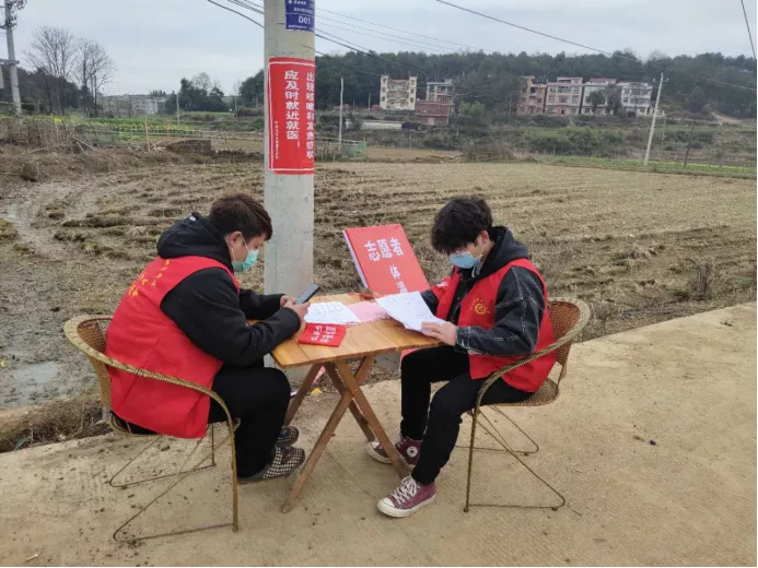 2018级计算机科学与技术二班学生,于疫情期间主动登记进出村的人员名单且对外来人员进行体温检测。