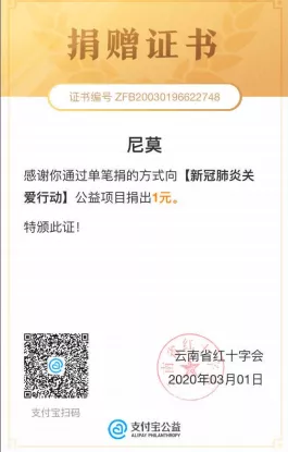 2017级物流二班学生,于疫情期间捐助3个“抗疫”基金会项目,600元。