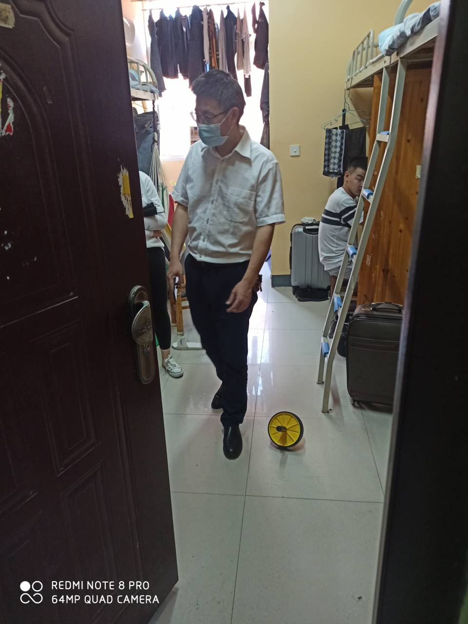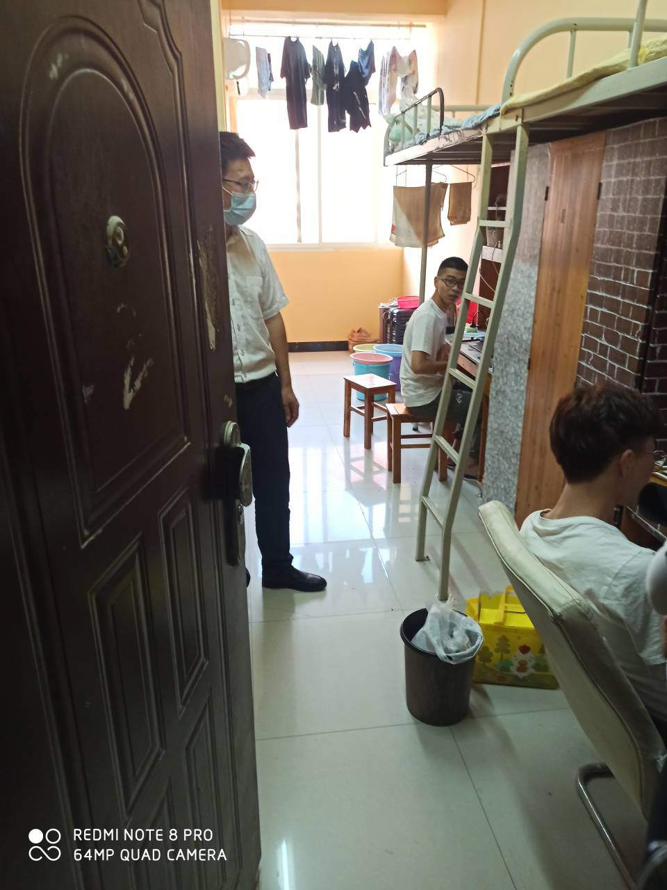 在检查过程中,彭院长和老师们逐一敲开19级学生寝室, 看望疫情期间刚入学的学生们,并亲切地慰问开学期间大家的心理、身体情况,同时叮嘱同学们在校期间做好个人防护、寝室卫生;并且对学生宿舍情况进行了详细了解,询问了各学生宿舍的防火、用电情况,希望同学们在新学期要继续重视安全防范工作,增强安全防范意识,防止校园卫生事故的发生。