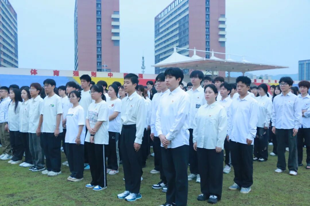 晨雾中,国旗冉冉升起,师生肃立。红旗如火焰,承载百年热血,我们敬礼,接过历史的接力棒。