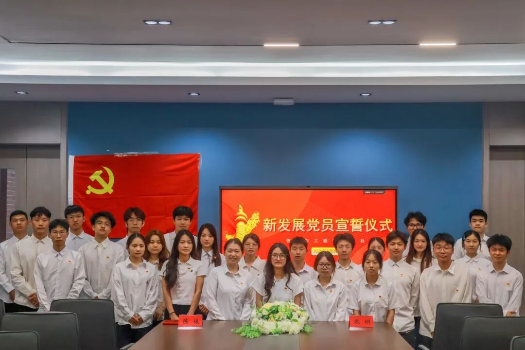为进一步筑牢党员思想根基,增强新发展党员的荣誉感、使命感与责任感,信息与工程学院党总支在智信楼512会议室隆重举行2025年春季新发展党员入党宣誓仪式。信息与工程学院学生第一党支部书记袁玥、学生第二党支部书记陈媛、信息与工程学院学生第一、二党支部部分党员代表及14名新发展党员参加宣誓仪式。仪式由信息与工程学院学生第二党支部书记陈媛主持。