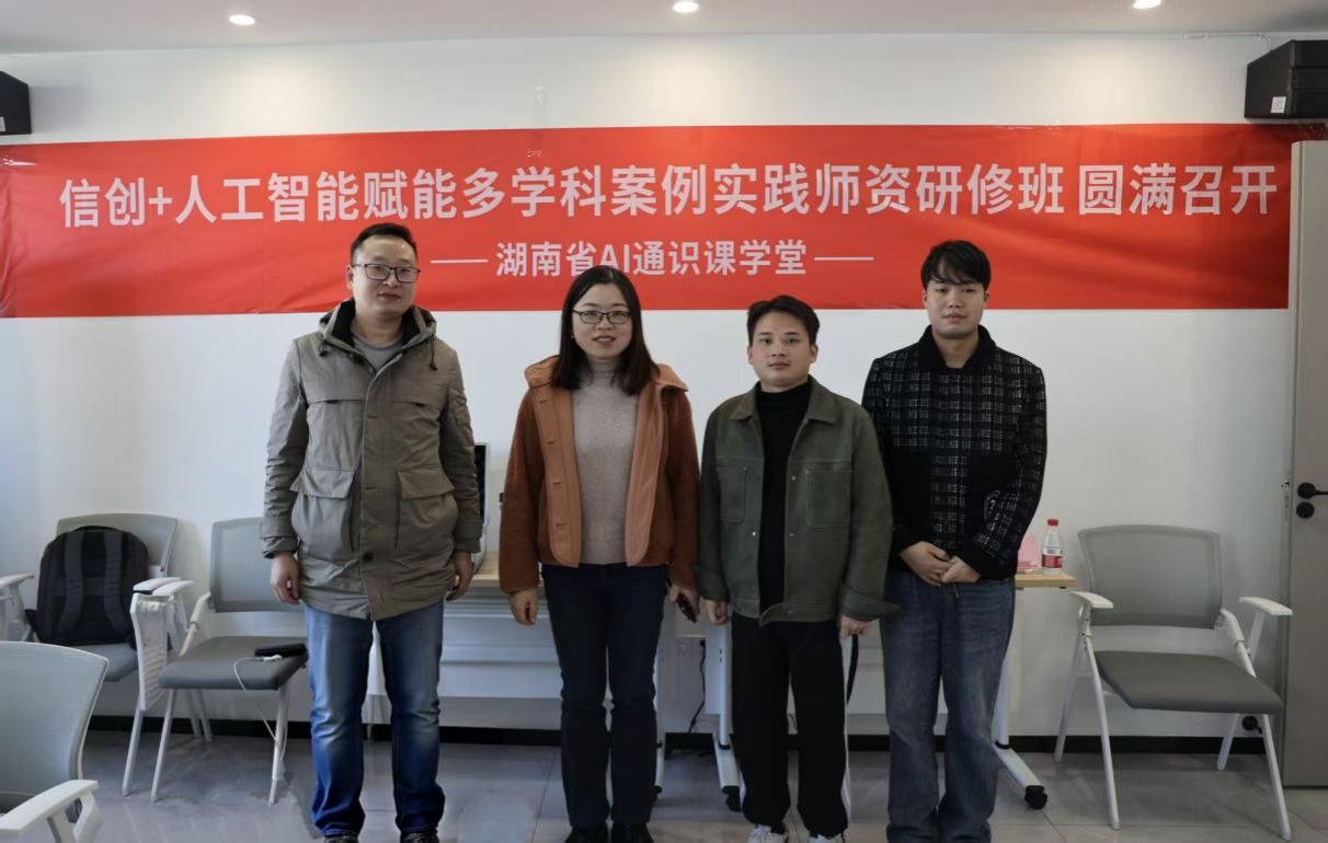 为促进信息技术应用创新与人工智能技术在教育领域的深度融合,进一步提升高校教师的多学科案例教学与实践能力,11月28日至29日,中南林业科技大学涉外学院信息与工程学院(新E代数智未来产业学院)刘敏、刘川川、魏健、杨李四位老师,参加了由长沙职业技术学院、麒麟信安人工智能孵化器、湖南欧拉生态创新中心、青软集团联合举办的“信创+人工智能赋能多学科案例实践师资研修”活动。
