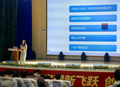 随后,校企合作单位优极限公司总监赵丹向同学们介绍了实习岗位的具体职责和企业培养体系,勉励大家珍惜实习机会,在实践中夯实专业技能,为未来职业发展奠定坚实基础。