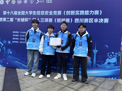 2025年3月16日,由中央网络安全和信息化委员会办公室、教育部、国家市场监督管理总局、国家数据局指导,中国信息安全测评中心和北京师范大学、中国电信集团有限公司、中国移动通信集团有限公司联合主办的第十八届全国大学生信息安全竞赛(创新实践能力赛)暨第二届“长城杯”铁人三项赛(防护赛)半决赛成功举办。由信息与工程学院李忠良老师指导的卢昡锦、姚浩军、周豪、何宏盛四名同学组成的“签完到睡觉”队和徐建峰老师指导的李豪、李亮、金鑫、王懿妃四名同学组成的“来不及签到”队在这次比赛中斩获佳绩,其中“签完到睡觉”队荣获半决赛三等奖。