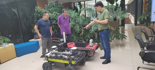 在胡总的陪同下,考察团队参观了公司研发的一系列机器人产品,展示了中矿金禾在智能控制、人机交互、自动化生产等领域的强大技术实力和创新水平,考察团队对中矿金禾公司的技术实力、专业素养和创新精神给予了高度评价。