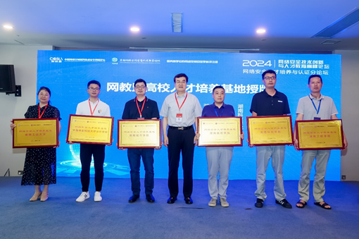 本次论坛举办了“网教盟高校人才基地”授牌仪式,我校成为网教盟网络安全人才培养基地,我院副院长杨露参加授牌仪式。杨副院长表示,“这份荣誉不仅是对学院过去努力的肯定,更是对我们未来工作的期望和鞭策。我们将继续加强与产业界的合作,不断提高教学质量和科研水平,为社会培养更多优秀的网络安全专业人才。”