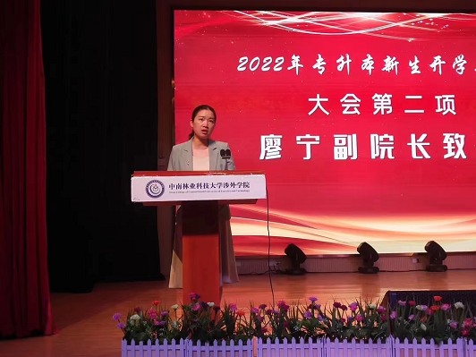 廖宁副院长对新同学表示热烈的欢迎,同时借用习近平总书记的一句话:“青年人正处于学习的黄金时期,应该把学习作为首要任务,作为一种责任、一种追求、一种生活方式”来勉励同学们要继续在涉外学院不断开拓、不断创造、要找到自己的梦想。希望大家能握紧大学里的宝贵时光,不留遗憾,在坚持的道路上克服困难,迎来属于自己的高光时刻。