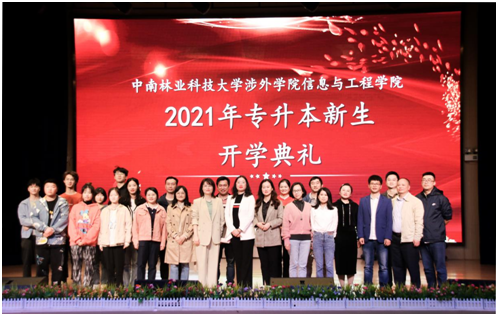 本次典礼由信息与工程学院党总支书记潘舒群主持,中南林业科技涉外学院院长周志宏、中南林业科技大学涉外学院副院长马宗艳副、信息与工程学院副院长廖宁、电子信息工程教研室主任向诚、软件工程教研室主任杨露、计算机科学与技术教研室主任彭琛、2019级“专升本”新生辅导员老师及各专业教师代表出席开学典礼。