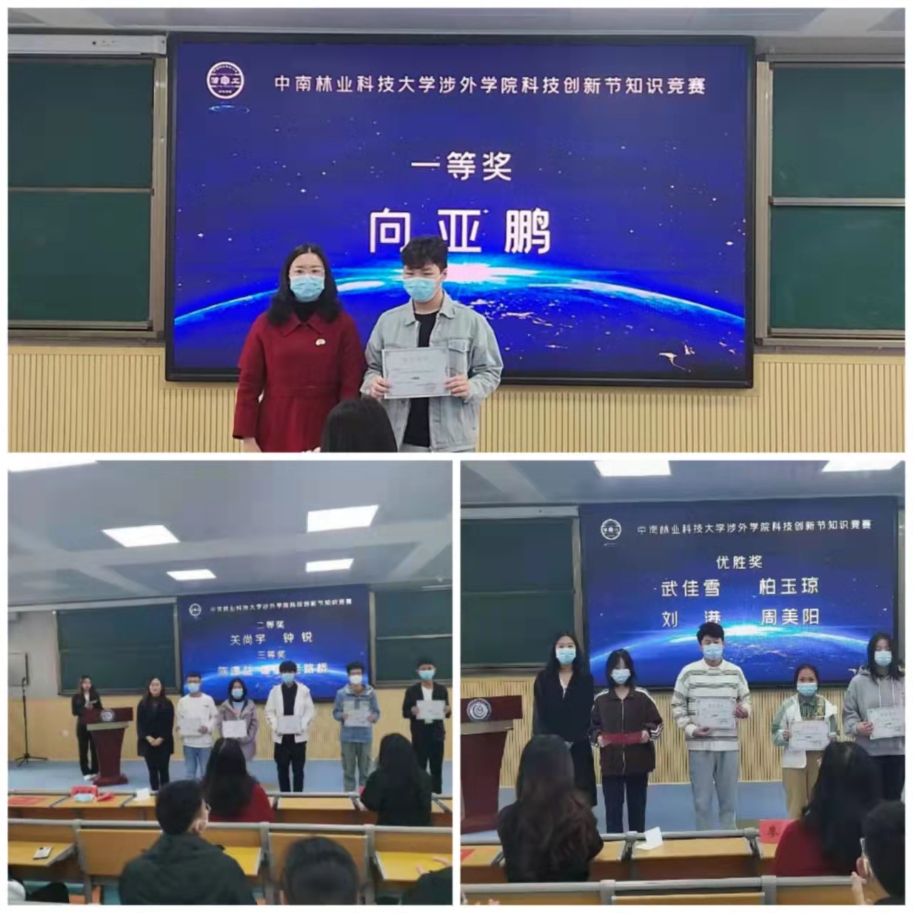 11月11日下午,中南林业科技大学涉外学院信息与工程学院科技创新节闭幕式在一教学楼1310举行。本次闭幕式由罗冰芝主持,出席此次活动的领导及嘉宾有:信息与工程学院副院长廖宁、信息与工程学院党总支书记潘舒群、信息与工程学院团总支书记甘甜、信息与工程学院教学秘书郑丰和、陈晴。