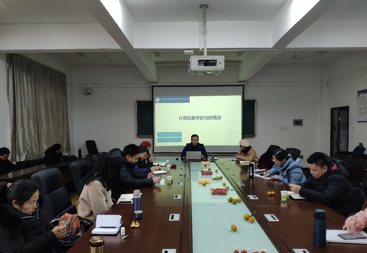 首先计算机教研室的李津老师围绕《计算机教学的与时俱进》的主题。分享新时代的教师如何在教学中及时更新观念,如何思考、改变,做一个紧跟时代发展、与时俱进的老师。