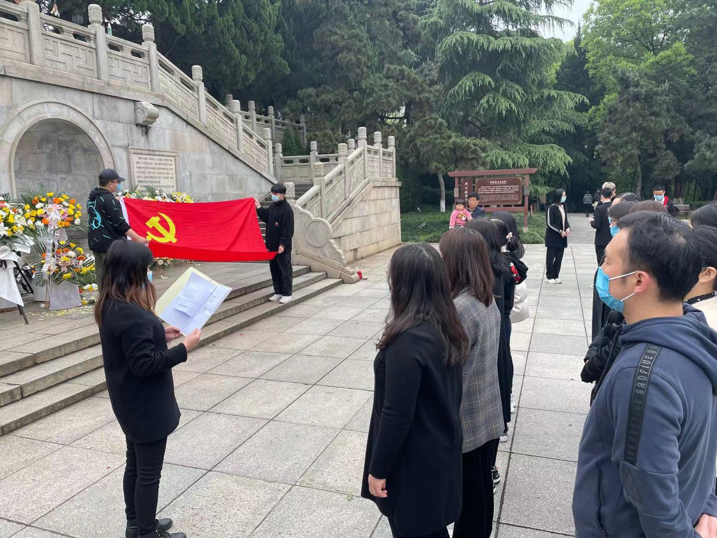 随后教工支部陈亚妮书记领誓,在纪念碑下,大家重温入党誓词,誓词声声响彻烈士陵园的上空,先烈们为革命事业而献身的崇高精神激励着全体党员。