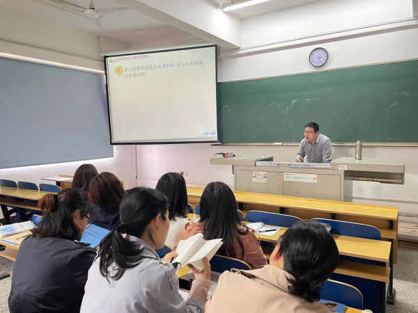 最后,为提高数学团队教师的职业道德素养及职业水平,正确引导新进教师教学思路以及高效提升其教学能力,马发强老师先对即将进行的信工院公开课示范课内容进行说课,紧接着讲课比赛省赛二等奖获得者郑彭丹老师针对其教学设施环节以及教学内容给予了建设性和操作性兼具的指导意见,让整个数学团队都如沐春风,受益良多。