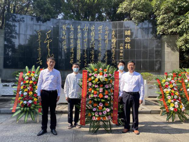 在杨开慧陵墓前,全体党员怀着肃穆的心情,为革命烈士默哀,并向烈士献上花篮,行鞠躬礼。面对鲜红的党旗,短短的入党誓词,字字铿锵有力,全体党员以饱满的热情和响亮的声音传达出了作为共产党员的责任感和使命感。