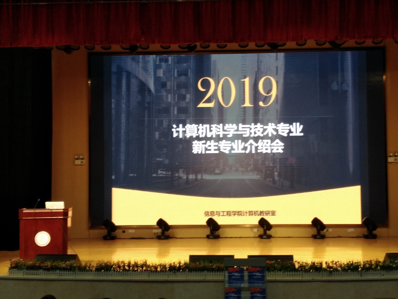 为了帮助广大新生了解计算机科学与技术专业的特色,更顺利地适应大学生活,计算机科学与技术专业教研室于2019年9月5日下午在学院演艺报告厅为2019级新生举行了专业介绍会,出席本次介绍会的有信息与工程学院副院长彭相华,副书记潘舒群,以及任课教师:彭琛老师、李津老师、柴桦老师、杨露老师,介绍会由彭琛老师主持。