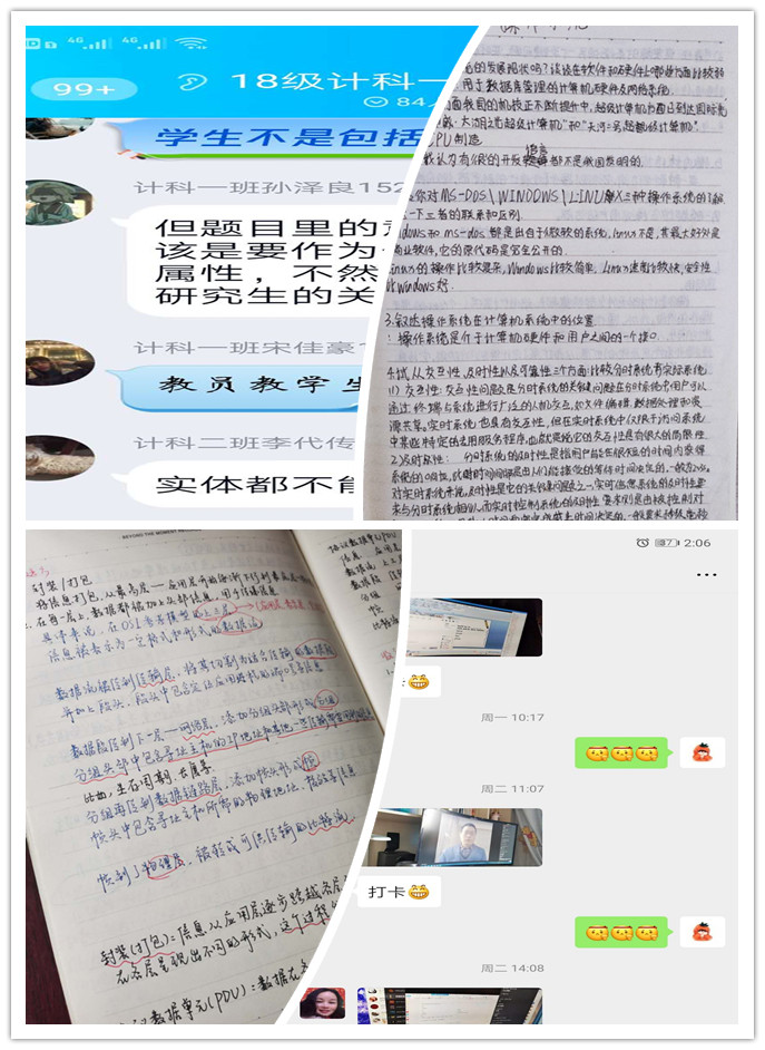 此次网络课堂给我的最大的感受在于许多平时在面授课堂上“坚守”教室后排,对老师的互动不予理睬,坚持做自己的“低头侠”的同学,在网络课堂上变得活跃许多,对老师的提问也会积极地写出自己的想法。在进行网课时,由于手机电脑就在眼前,在老师的引领下,也能促使学生及时对自己不明白的地方进行搜索了解。 ——17级物流二班陈佳瑶