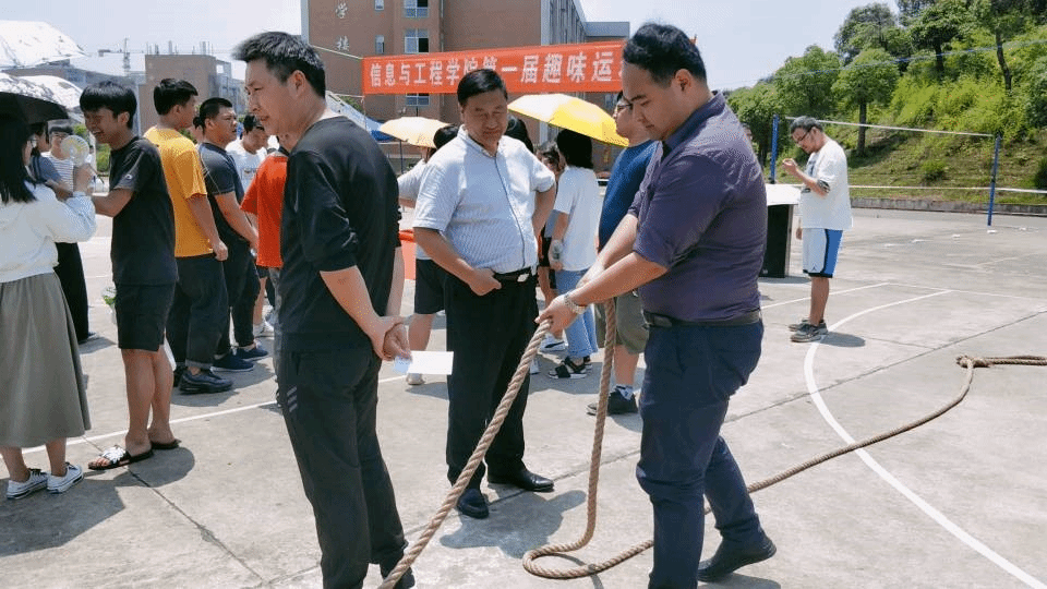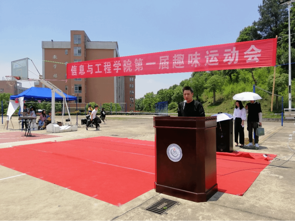 信息与工程学院副院长彭相华致辞表示通过举办趣味性的运动项目让同学们积极参与,发扬同学们的团队精神、增强凝聚力、展现青春的活力,从而提高信息与工程学院学生与教师合作和坚忍不拔的精神。