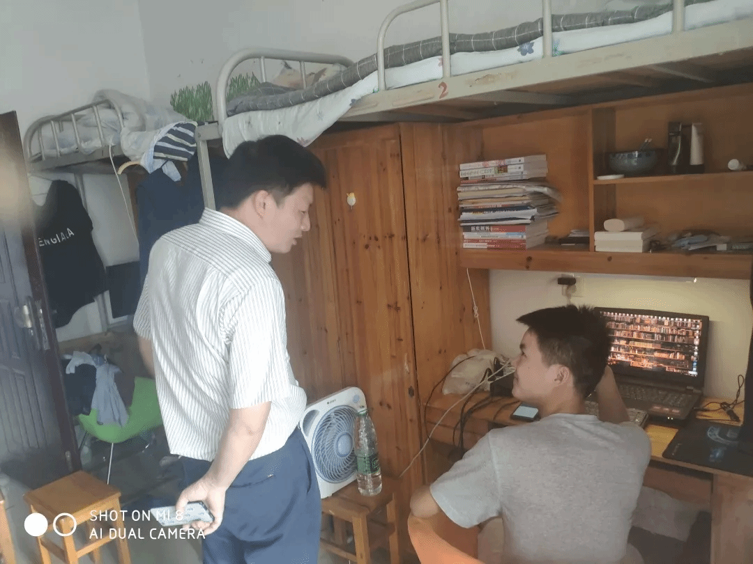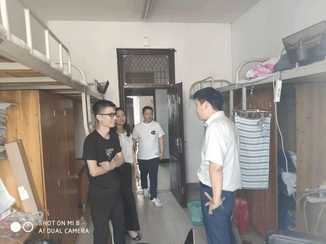 彭院长和老师们逐一敲开毕业生寝室的门,看望还未离校的毕业生们,关心的问到学生们是否找到工作,在生活中是否有困难。也贴心地提醒学生们,在寝室少吸烟喝酒要爱护身体,最后在校这几天同样要注意寝室卫生的干净整洁,一定要注意用电安全。