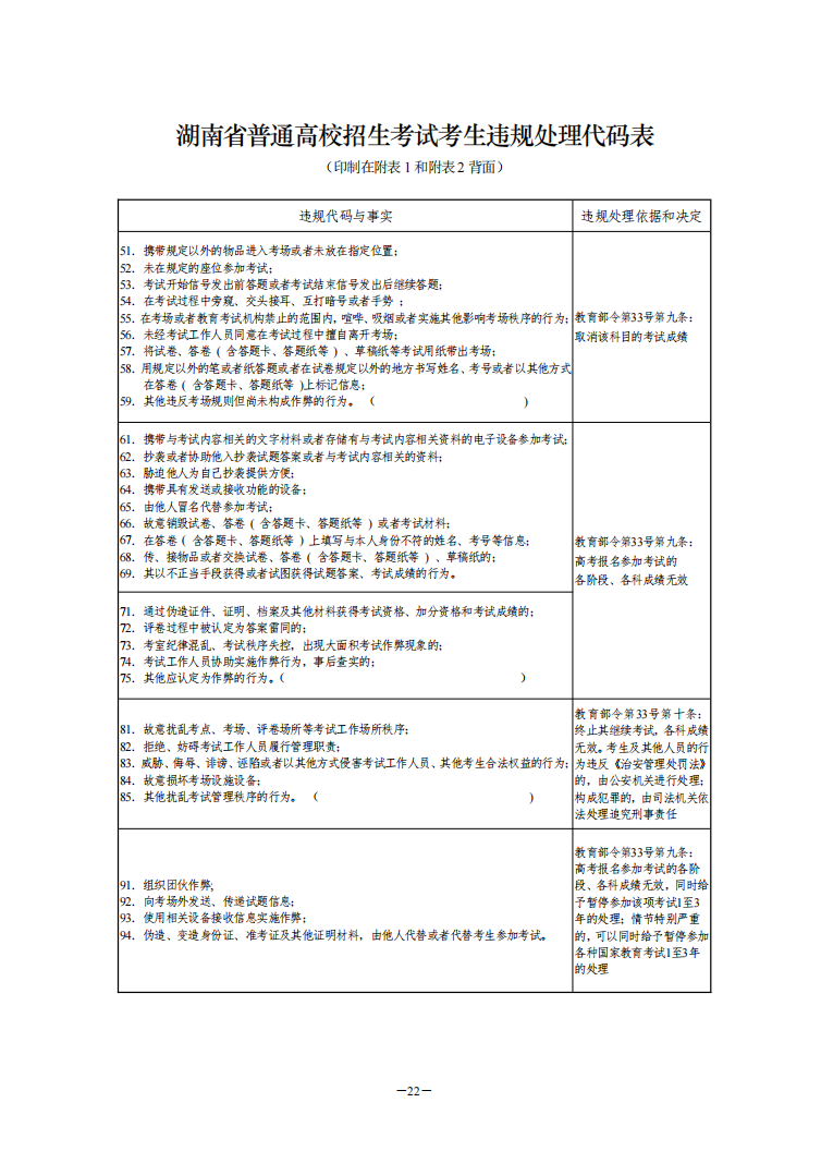 附件:1.湖南省普通高校招生考试考生违规行为认定及处理程序