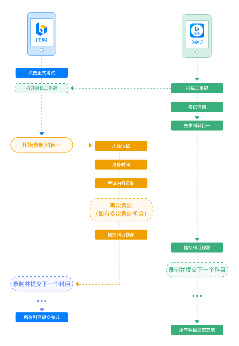(2) 双机位考试时,提交主机位科目视频后,辅机位对应科目的视频才可以提交;