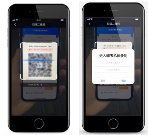 一场考试只有一个二维码,最多只支持3台手机扫码,超过3台无法再扫描。请注意一定不要随便外泄二维码,导致无法进行辅机拍摄。