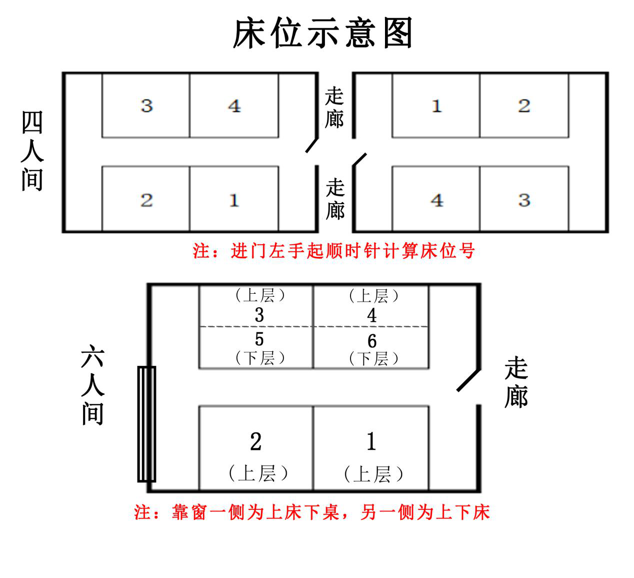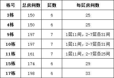 【注意】:宿舍的布局可以看宿舍示意图,每一个房间都有空调和独立的卫生间。宿舍楼有性别要求,否则公寓楼层,房间号,床位号会没有数据