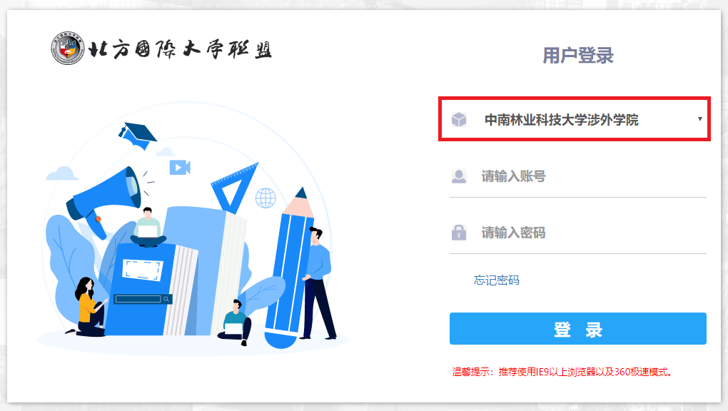 【注意】:第一栏选择学校名称为“中南林业科技大学涉外学院”