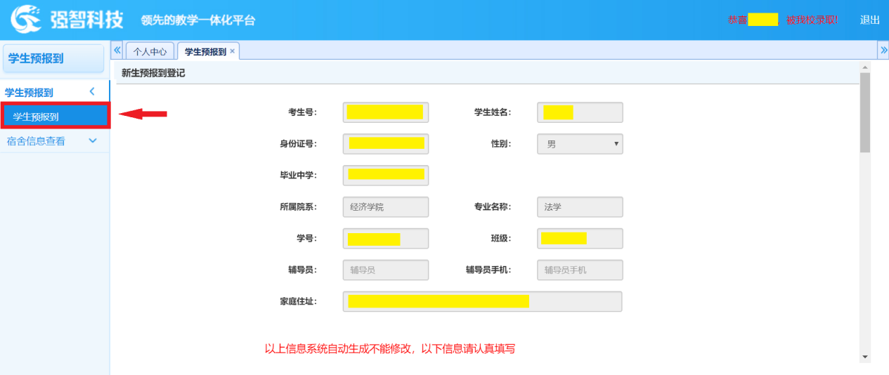 新生登陆系统的账号为身份证号,密码为新生的身份证号后6位数字,要注意,如果身份证含有X的请注意使用大写。