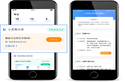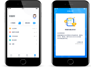 考试完成后,请持续关注【我的】→【查看考试结果】,并留意小艺帮推送消息,待院校发布通过名单后,考生可查看结果。注:图中内容和文字仅做示意。