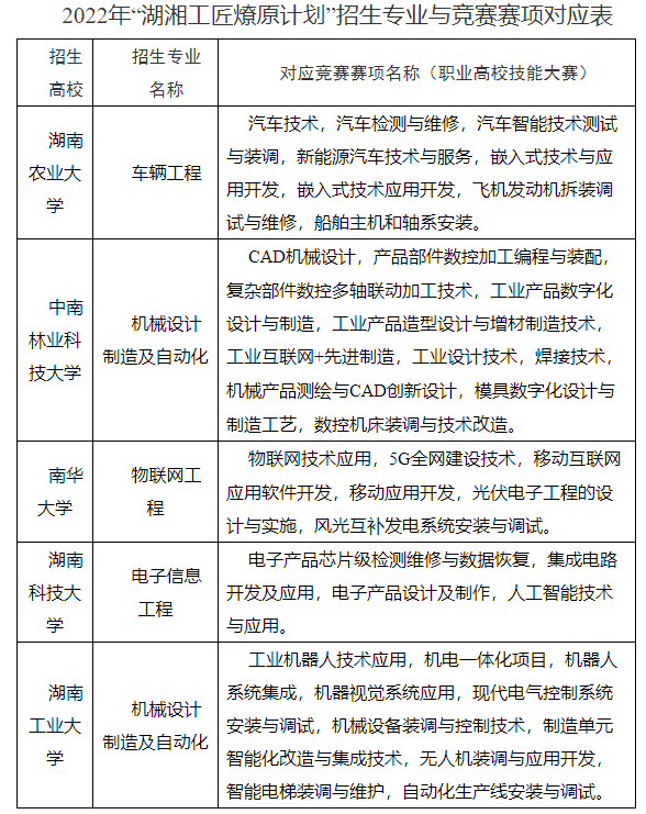 3.湖南省2022年“湖湘工匠燎原计划”招生工作实施办法