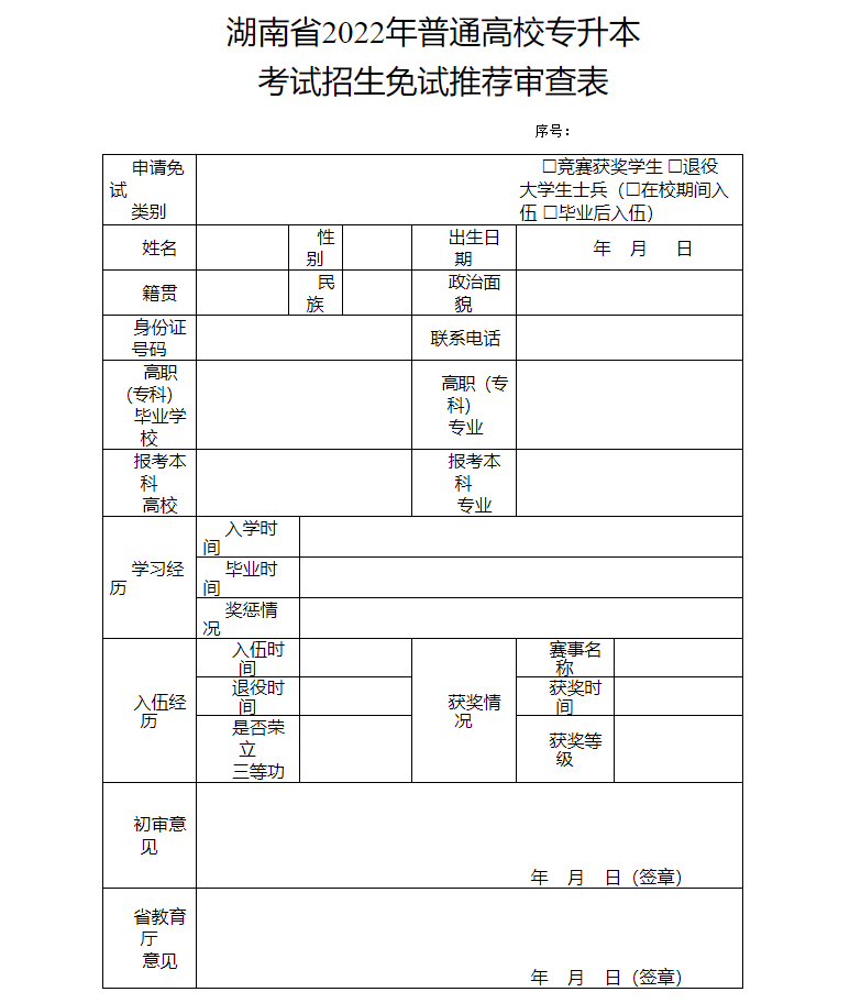 4.湖南省2022年普通高校专升本考试招生免试推荐审查表